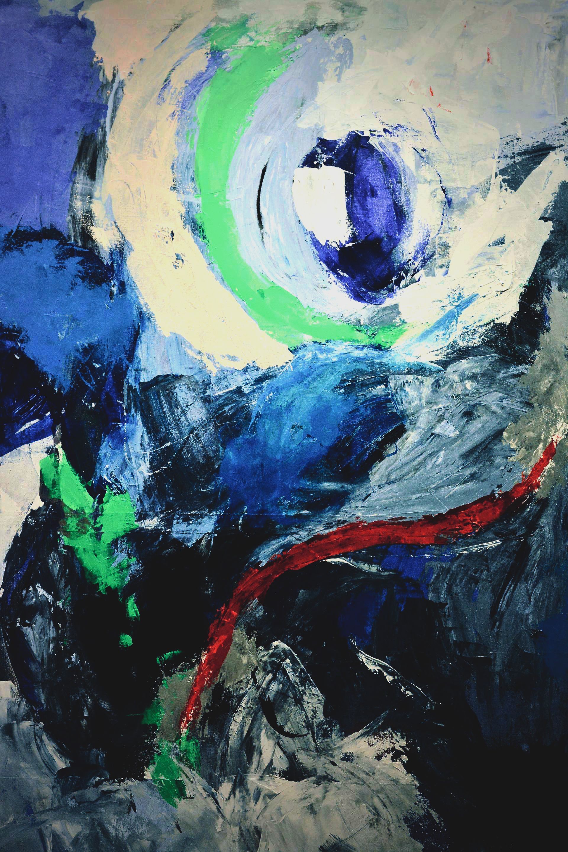 Energie hat. Daraus entstehen Wendungen, Motive, die sich immer weiter aus sich selbst heraus entwickeln. Ab einem gewissen Zeitpunkt überblicke ich das Bild im Ganze und nehme den Faden des ersten Impulses konkretisierend auf.